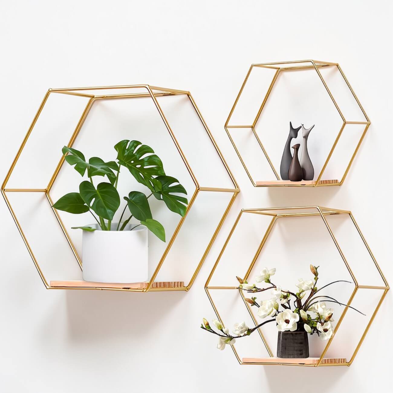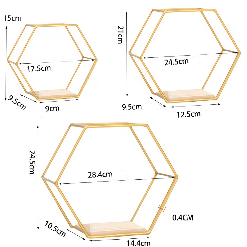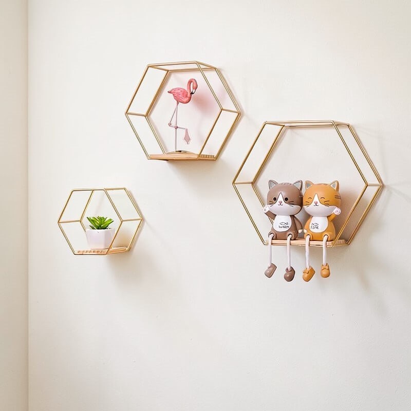 Διακοσμητικό μεταλλικό ράφι τοίχου σε χρυσό χρώμα 3 τεμ