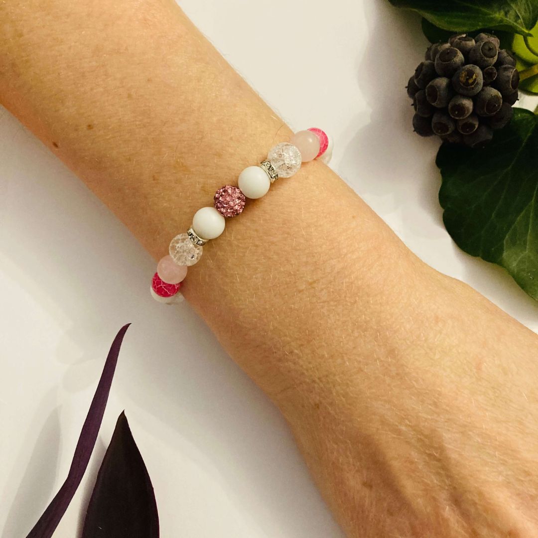 Υλικά: Φυσικό κρύσταλλο, Ροζ χαλαζίας, Κέλυφος κόγχης
