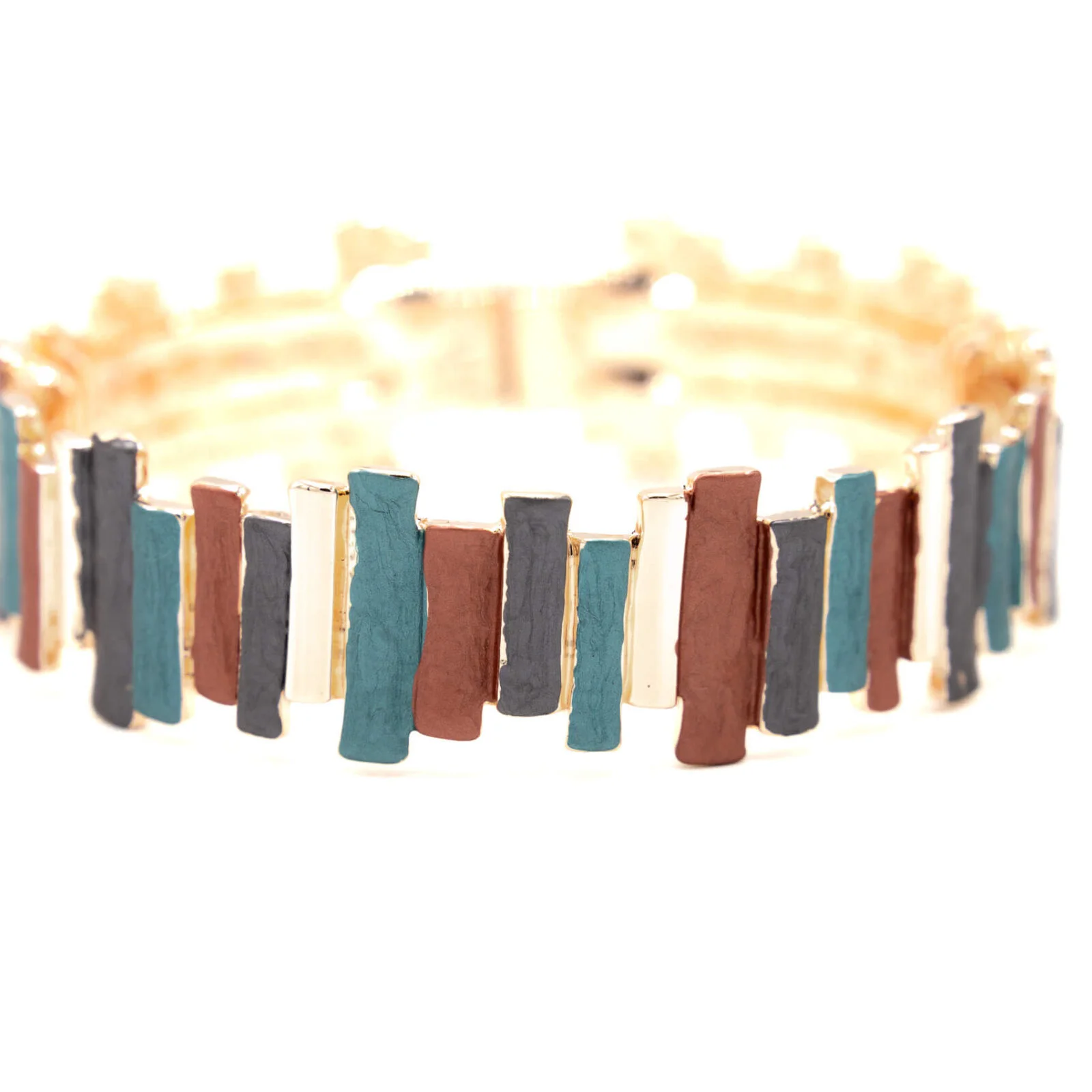 Βραχιόλι χειροποίητο με μαγνητικό κούμπωμα και με πολύχρωμο σμάλτο. Το ιδιαίτερο υψηλής ποιότητας υλικό και το μοτίβο του το καθιστούν μοναδικό και διαχρονικό.