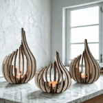 Κομψό κηροπήγιο – ξύλινη διακόσμηση τραπεζιού 3 τεμ.