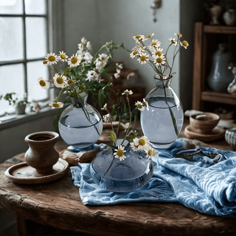 Κομψό σετ 3 βάζων σε μπλε χρώμα