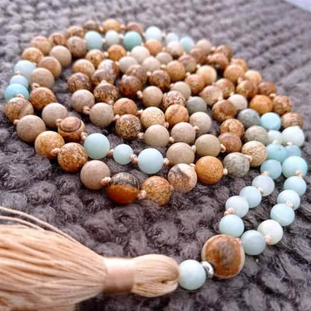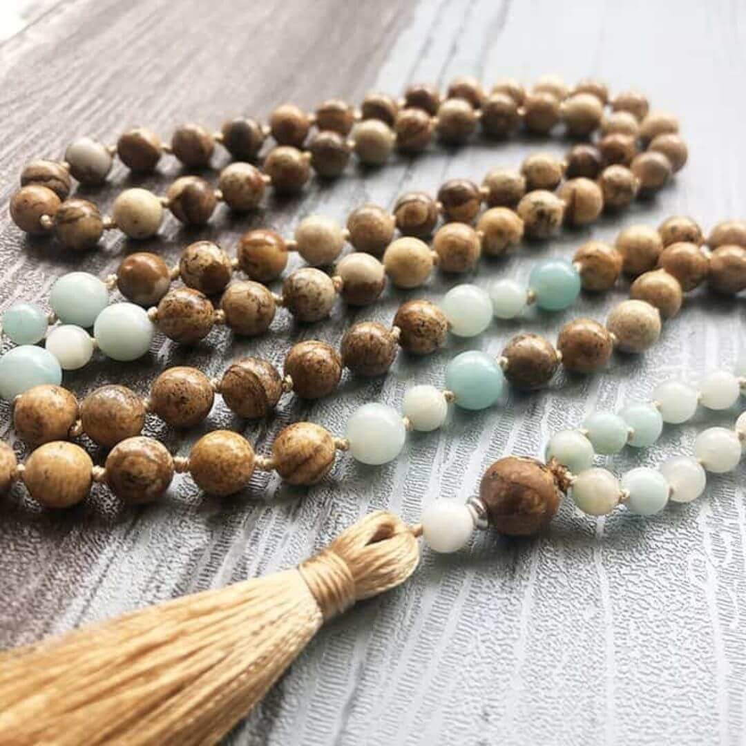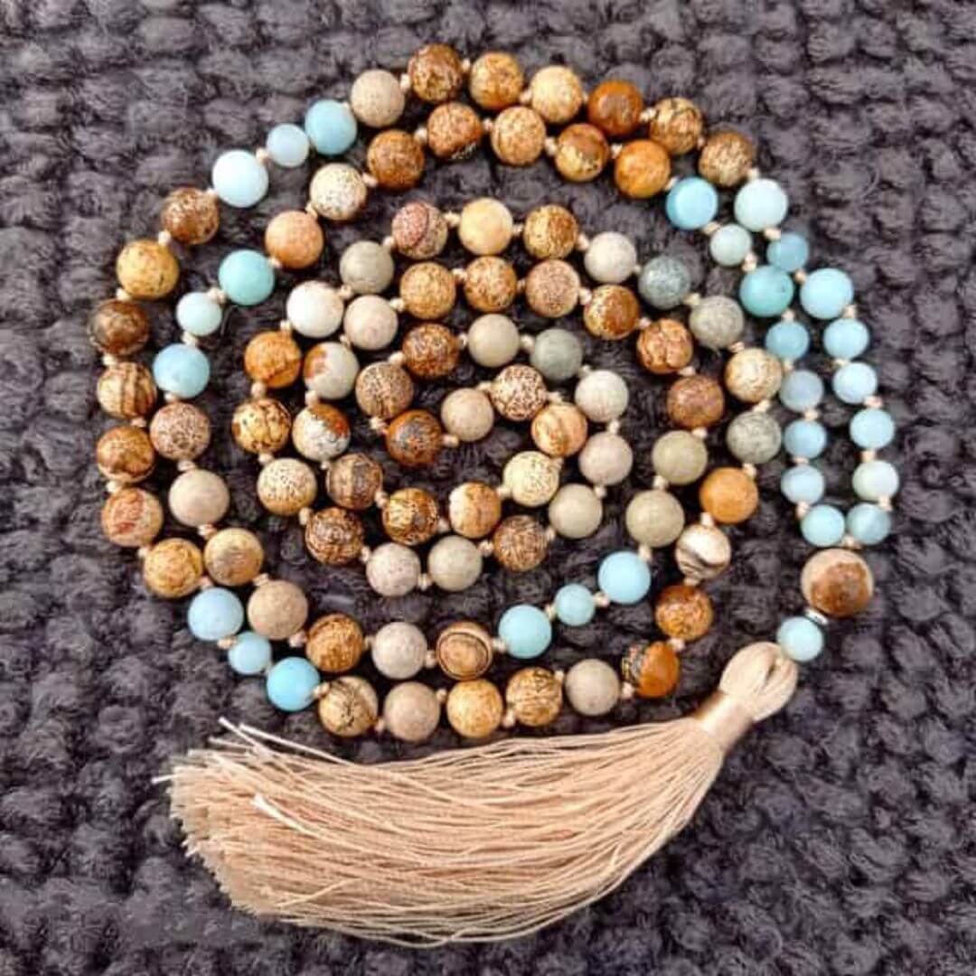 Μέγεθοι: Χρησιμοποιείται ως αλυσίδα και ως βραχιόλι επίσης! Έχει περιφέρεια περίπου 110 cm και αποτελείται από 108 μάτια 8 – 12 mm προσαρτημένα σε ελαστικό κορδόνι. Κράμα μετάλλου με διαχωριστικά ανάμεσα στα μάτια. Κράμα μετάλλου με διακόσμηση καρδιά.