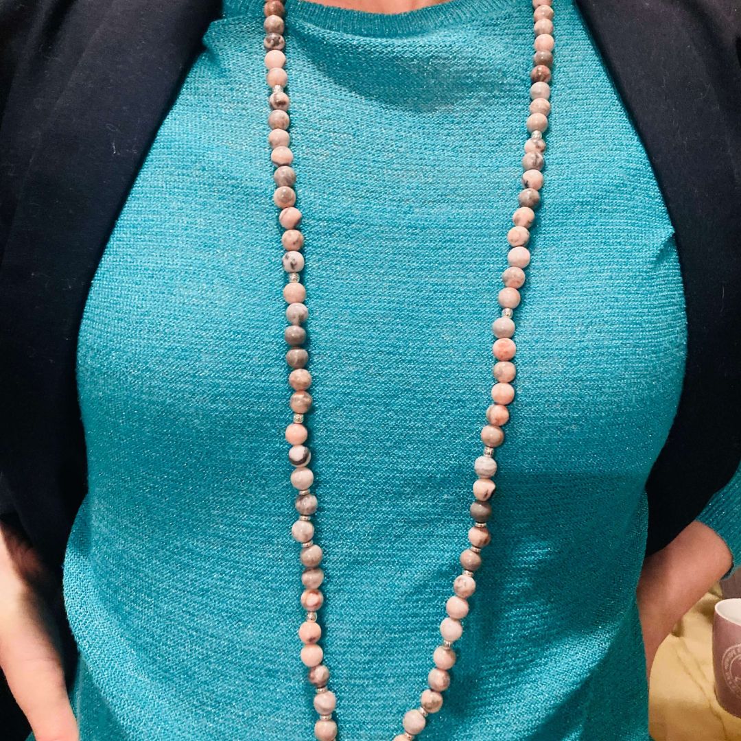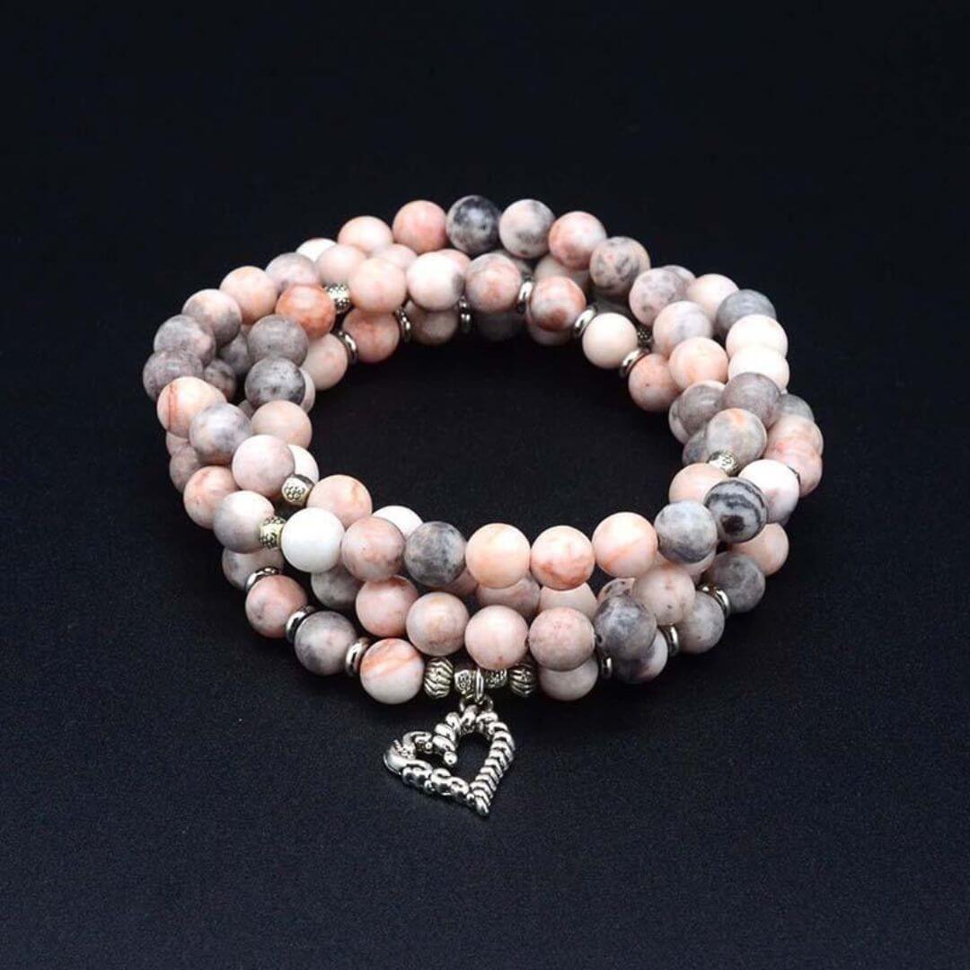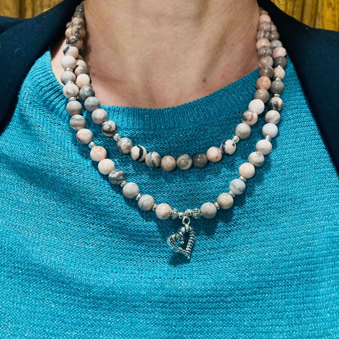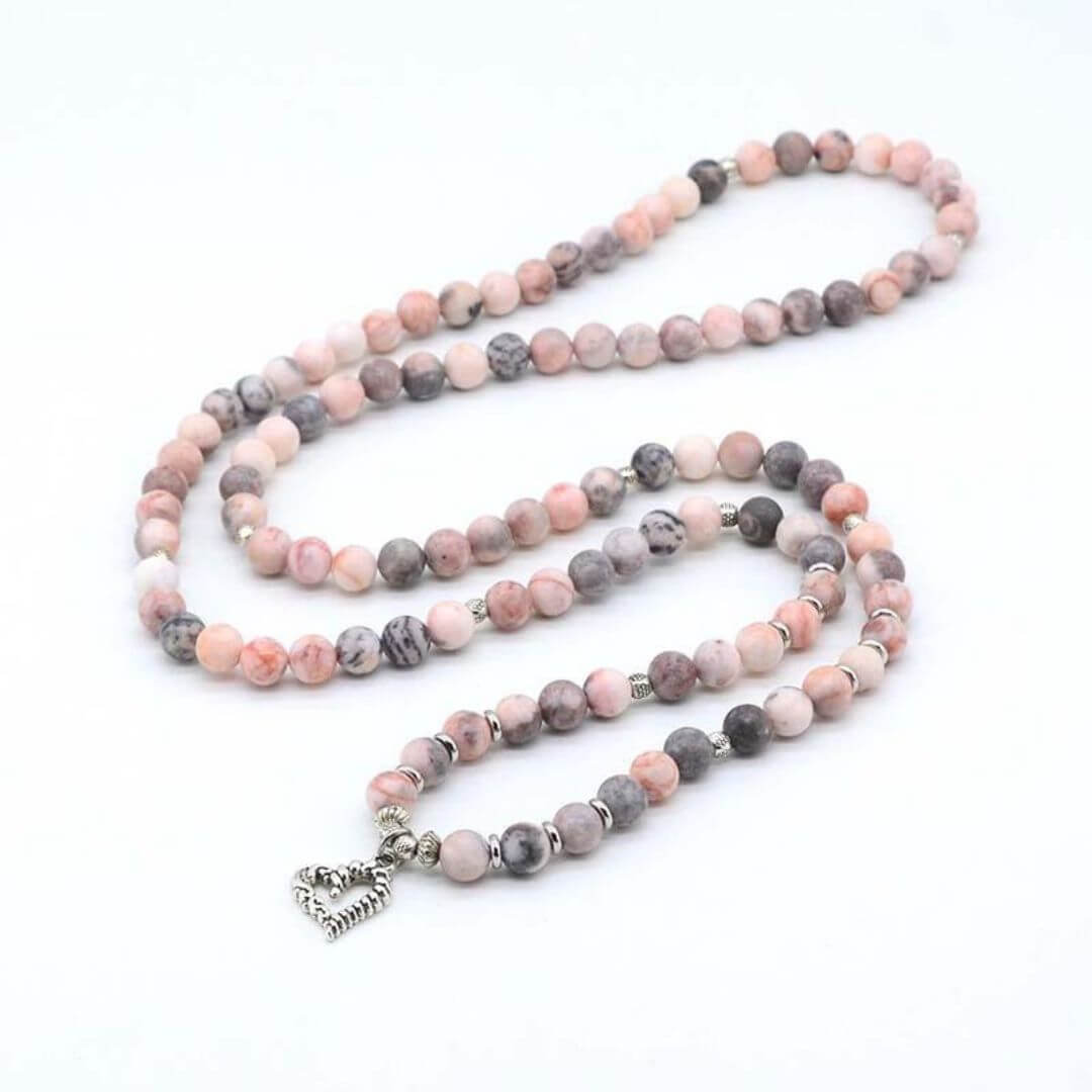 Μέγεθοι: Χρησιμοποιείται ως αλυσίδα και ως βραχιόλι επίσης! Έχει περιφέρεια περίπου 94 cm και αποτελείται από 108 μάτια 8 mm προσαρτημένα σε ελαστικό κορδόνι. Κράμα μετάλλου με διαχωριστικά ανάμεσα στα μάτια. Κράμα μετάλλου με διακόσμηση καρδιά.