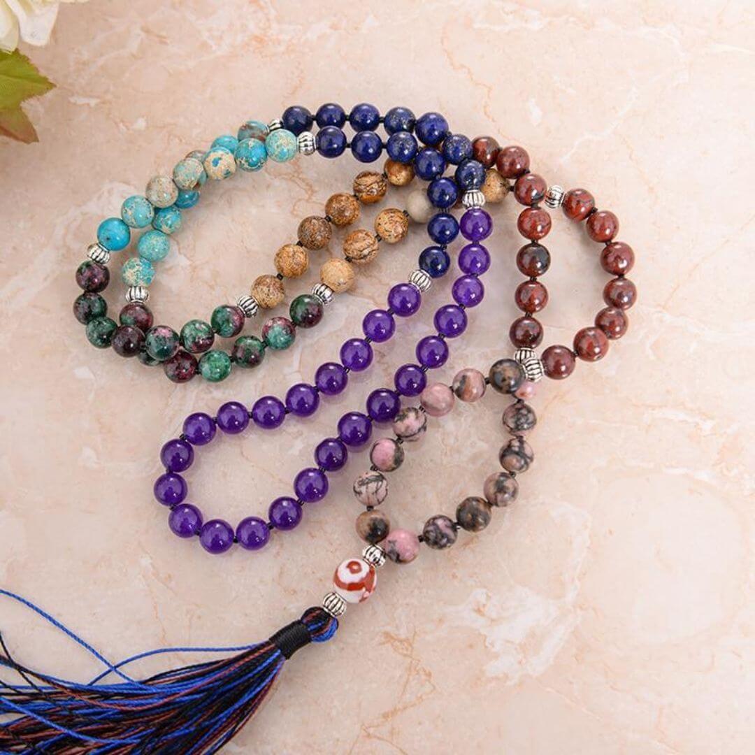 Μέγεθοι: Χρησιμοποιείται ως αλυσίδα και ως βραχιόλι επίσης! Έχει περιφέρεια περίπου 110 cm και αποτελείται από 108 μάτια 8 – 12 mm προσαρτημένα σε ελαστικό κορδόνι. Κράμα μετάλλου με διαχωριστικά ανάμεσα στα μάτια. Κράμα μετάλλου με διακόσμηση καρδιά.