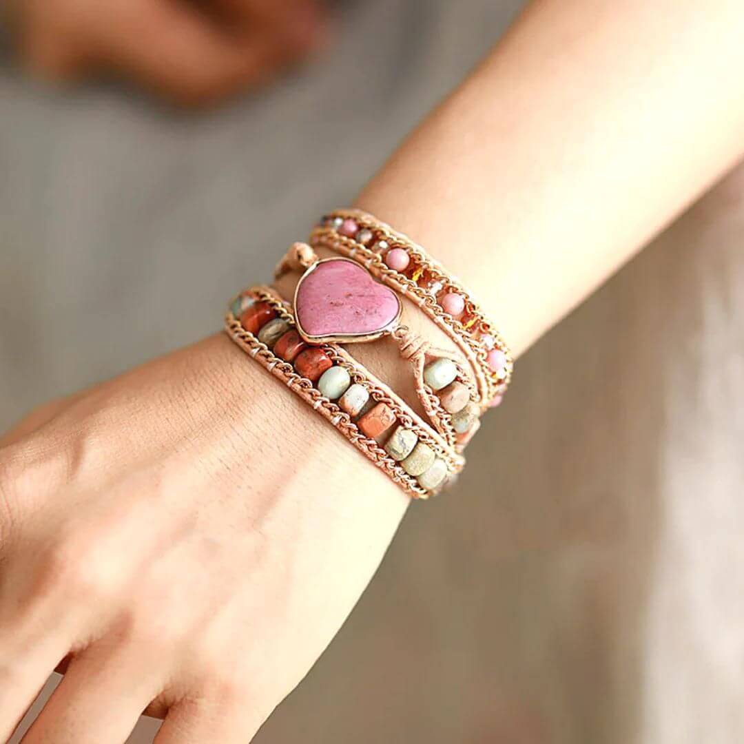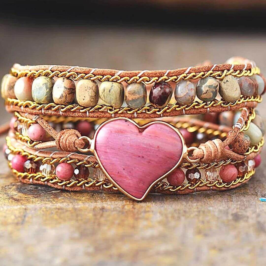 Υλικά: Ροδονίτης, ένχρωμα Ίασπις, κρύσταλλο, δέρμα