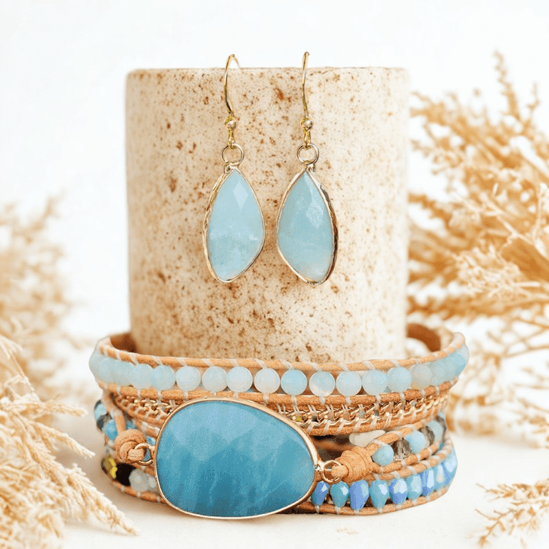 Υλικά: Aμαζονίτης, κρύσταλλο, δέρμα