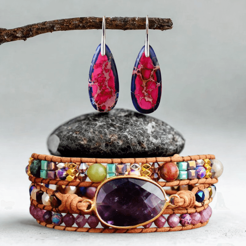 Υλικά: Αμέθυστος, Ίασπις, Κρύσταλλο, Γνήσιο δέρμα