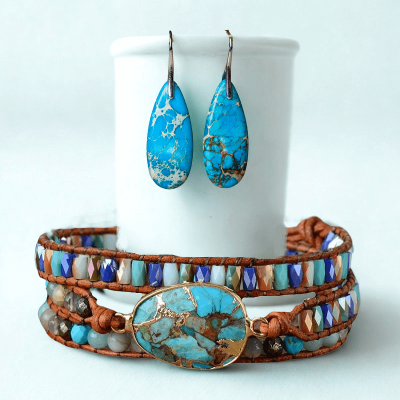 Θεωρείται, ότι το βραχιόλι περιέχει έναν συνδυασμό ισχυρών θεραπευτικών πετρών! Όμορφα χειροποίητα με φυσικό Ιάσπι του Αυτοκράτορα και κεντρικό κομμάτι από πέτρες Αμαζονίτη και Τυρκουάζ. Ο συνδυασμός αυτών των τρίων φυσικών λίθων επιτρέπει το απόλυτο θεραπευτικό, προστατευτικό, εξισορροπητικό, καταπραϋντικό και τονωτικό αποτέλεσμα, πράγμα που το βραχιόλι θα αισθανθεί σαν θεά.