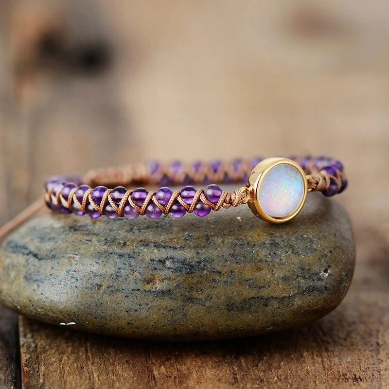 Υλικά: Αμέθιστος. οπάλιο, κορδόνι