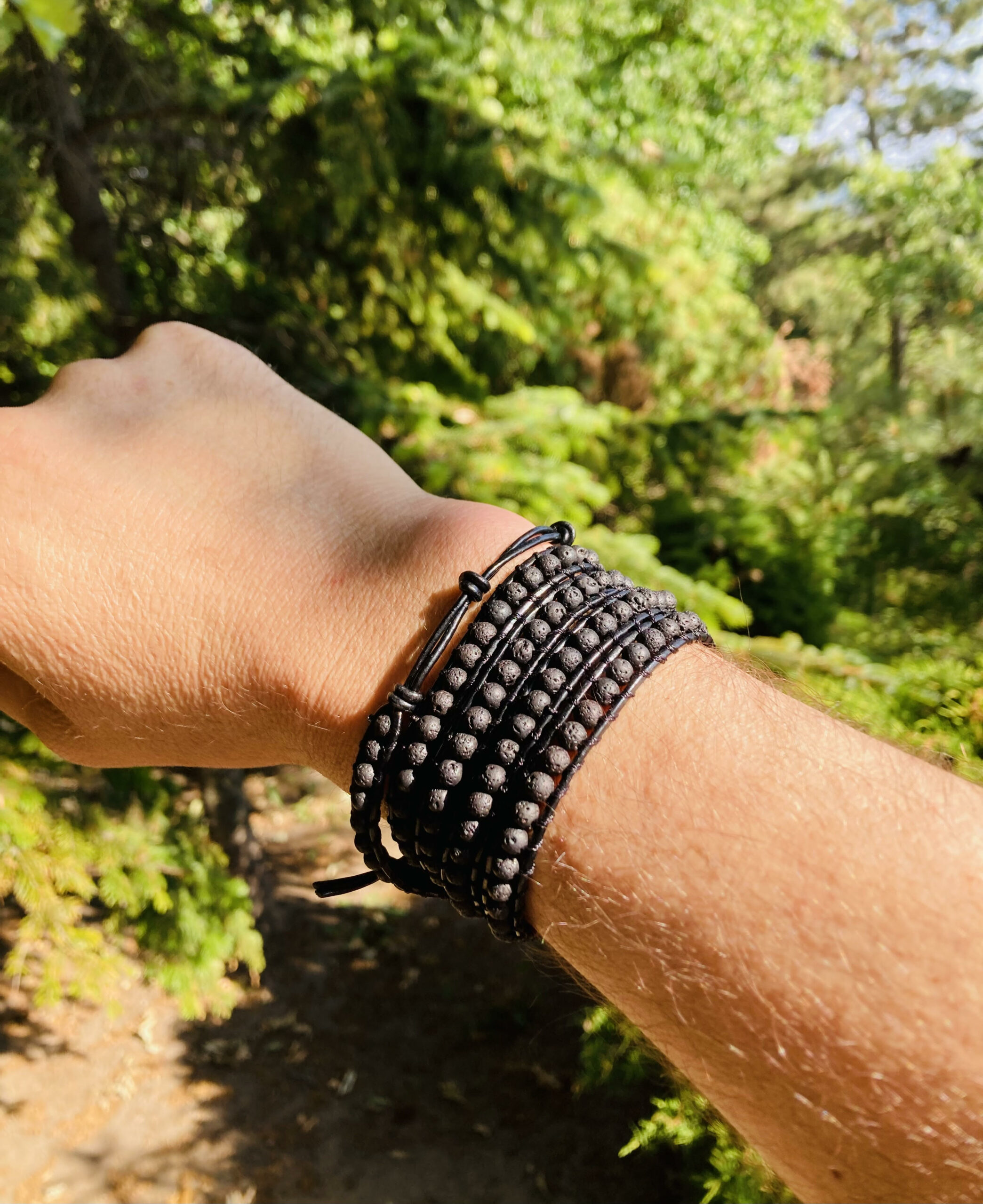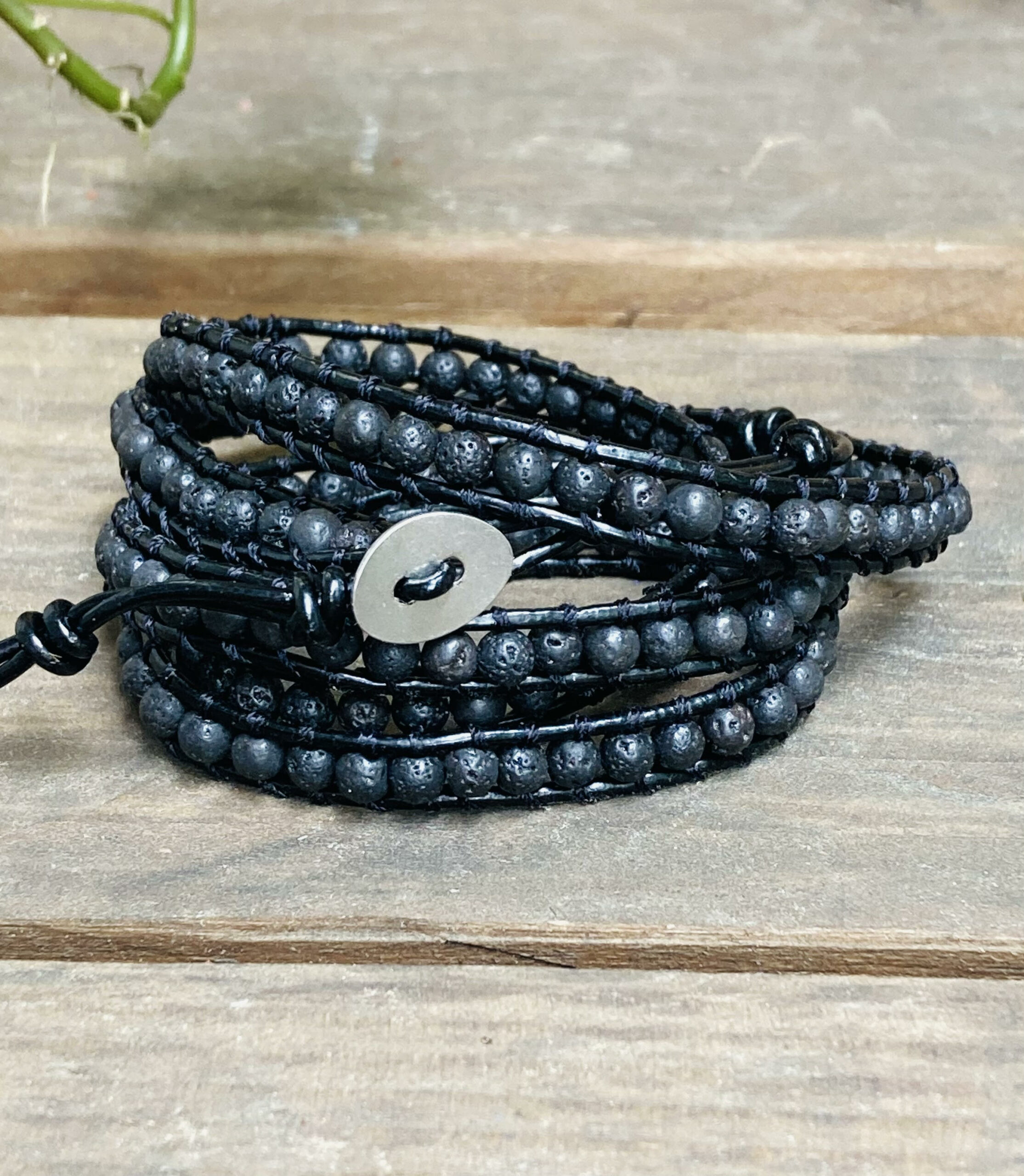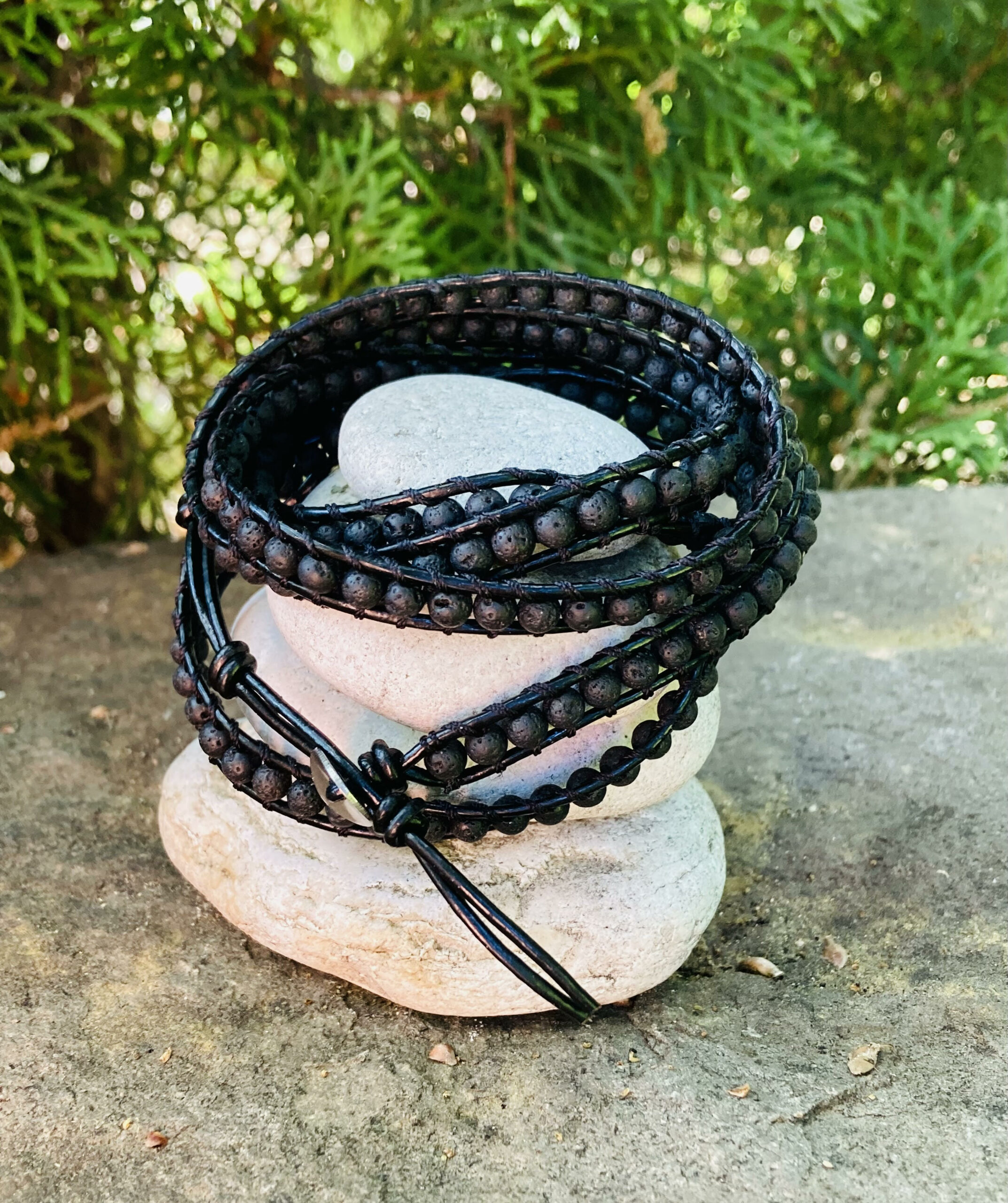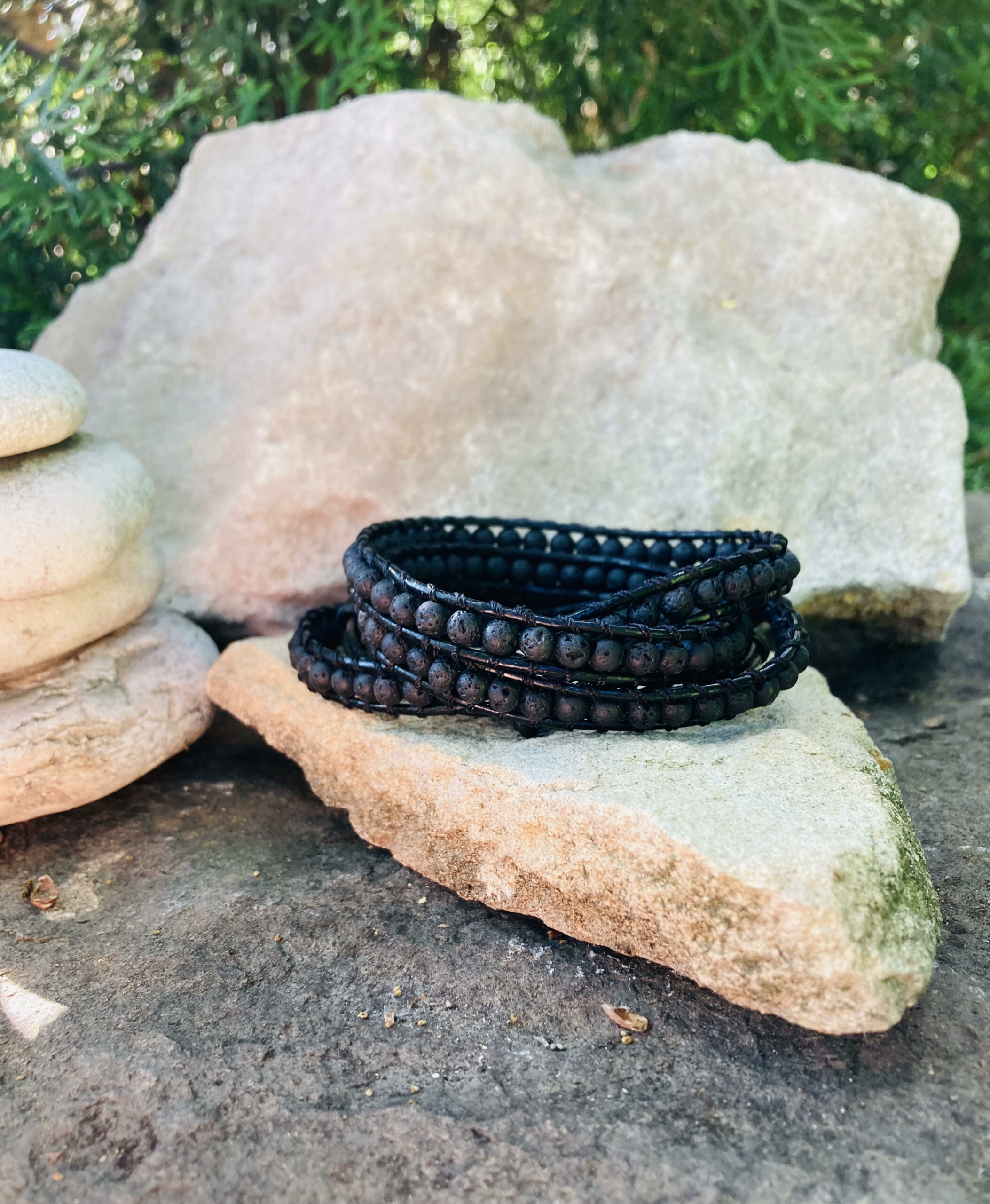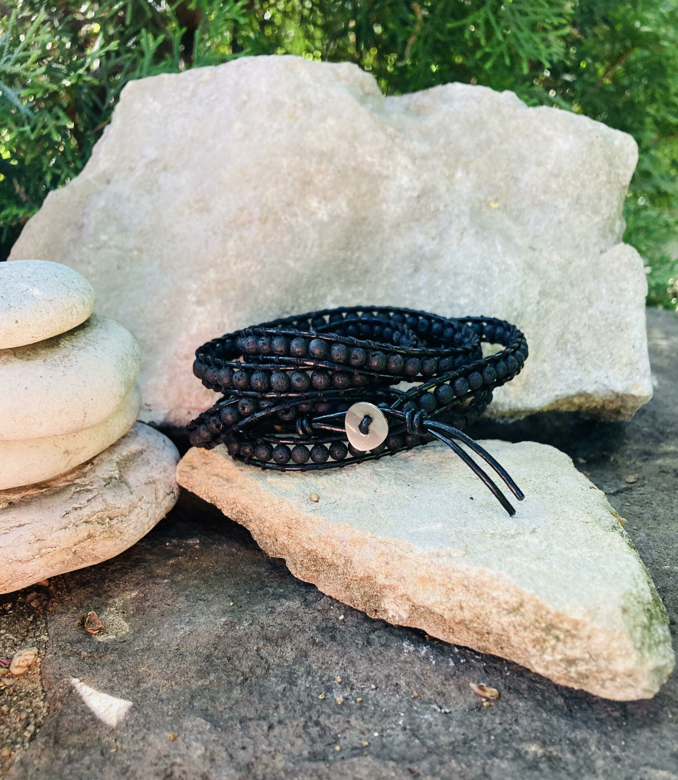 Υλικά: πέτρα Λάβα, επεξεργασμένο δέρμα